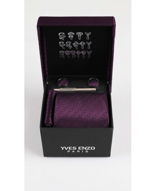 Coffret cravate YVES ENZO PARIS: Cravate, boutons de manchettes & pochette dans le coffret, largeur : 8 cm, longueur: 145 cm, 100% polyester.