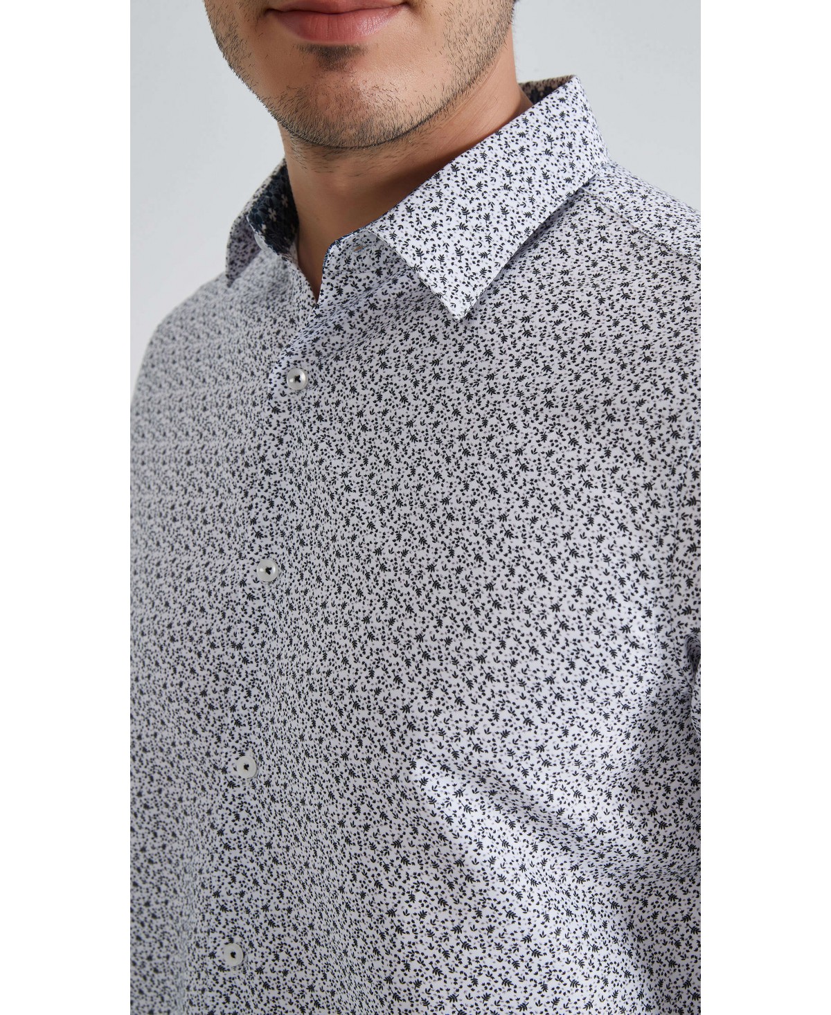 Chemise MC ENZO: REPASSAGE FACILE, Soft touch technology, coupe droite, col français, 65% polyester recyclé 35% polyester.