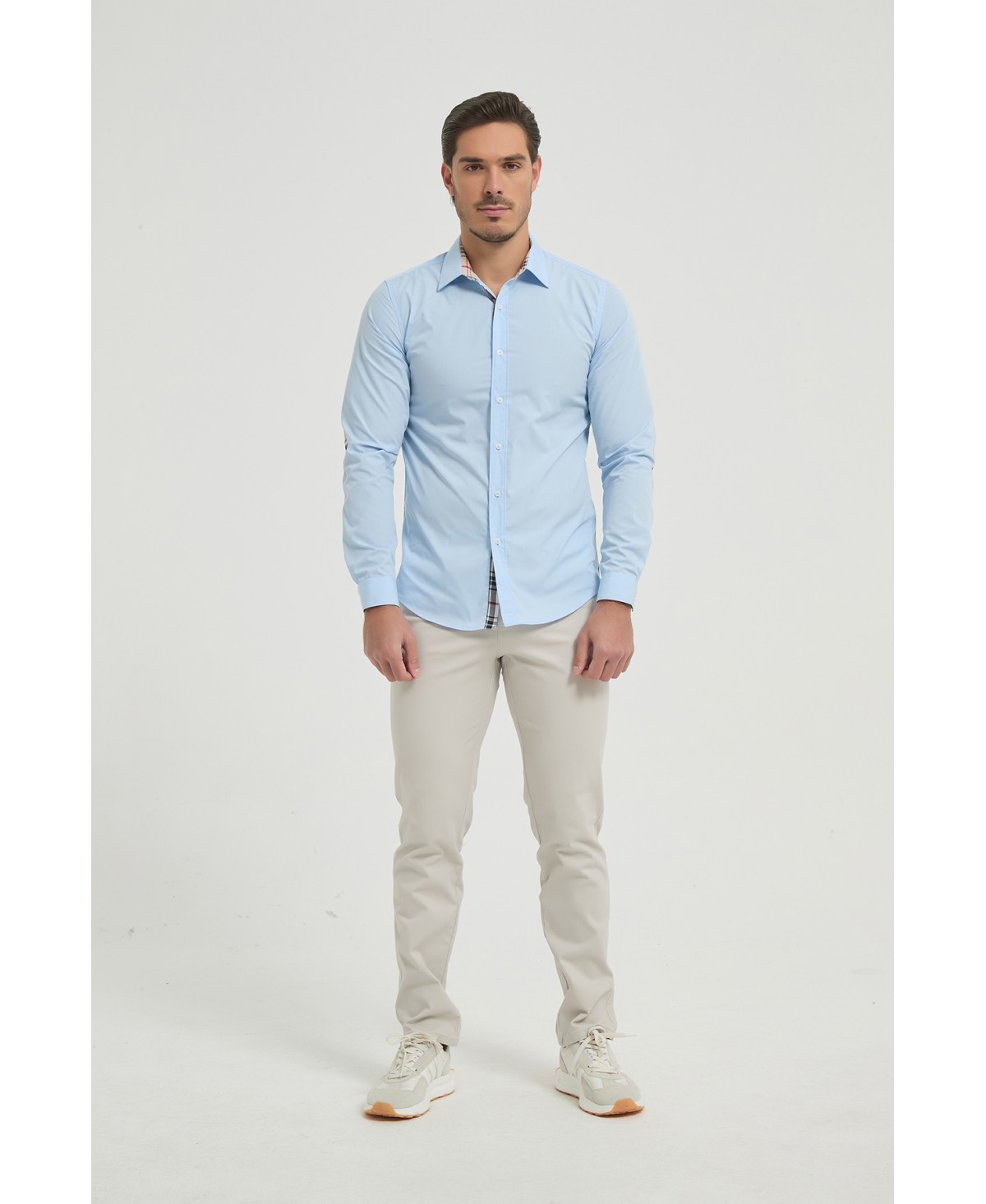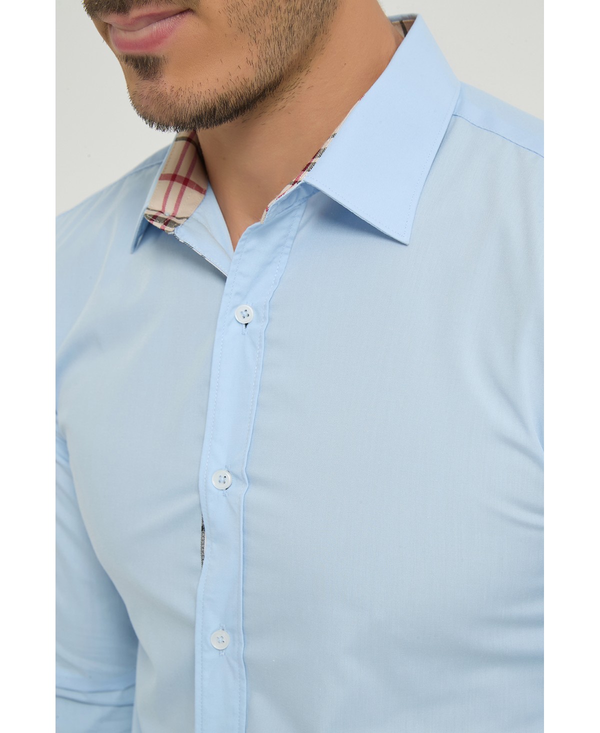SLIM5053-03 Chemise carreaux tartan à coudières slim fit - Ciel