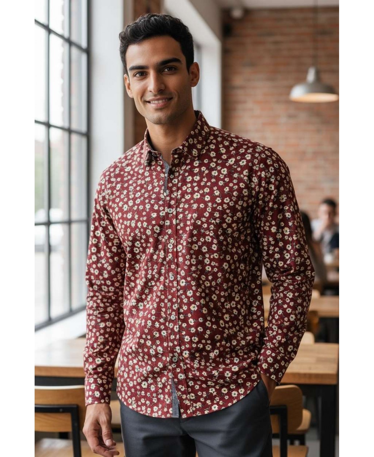 SLIM5037-04 Chemise bordeaux slim fit motifs DAYDREAM