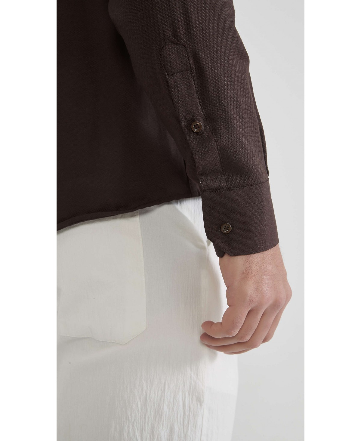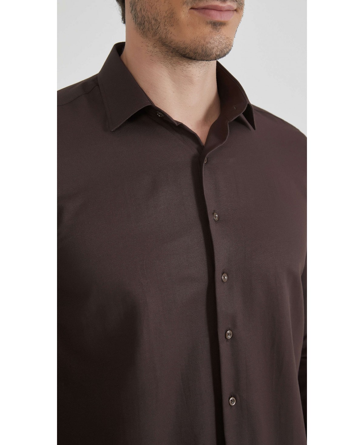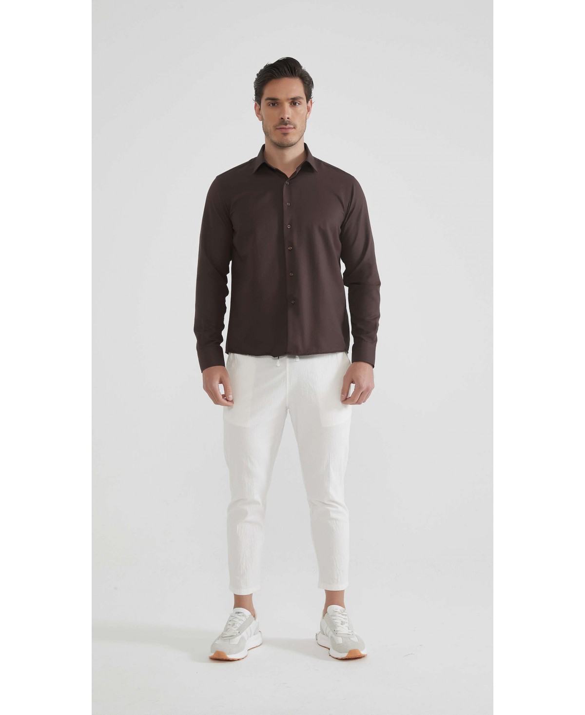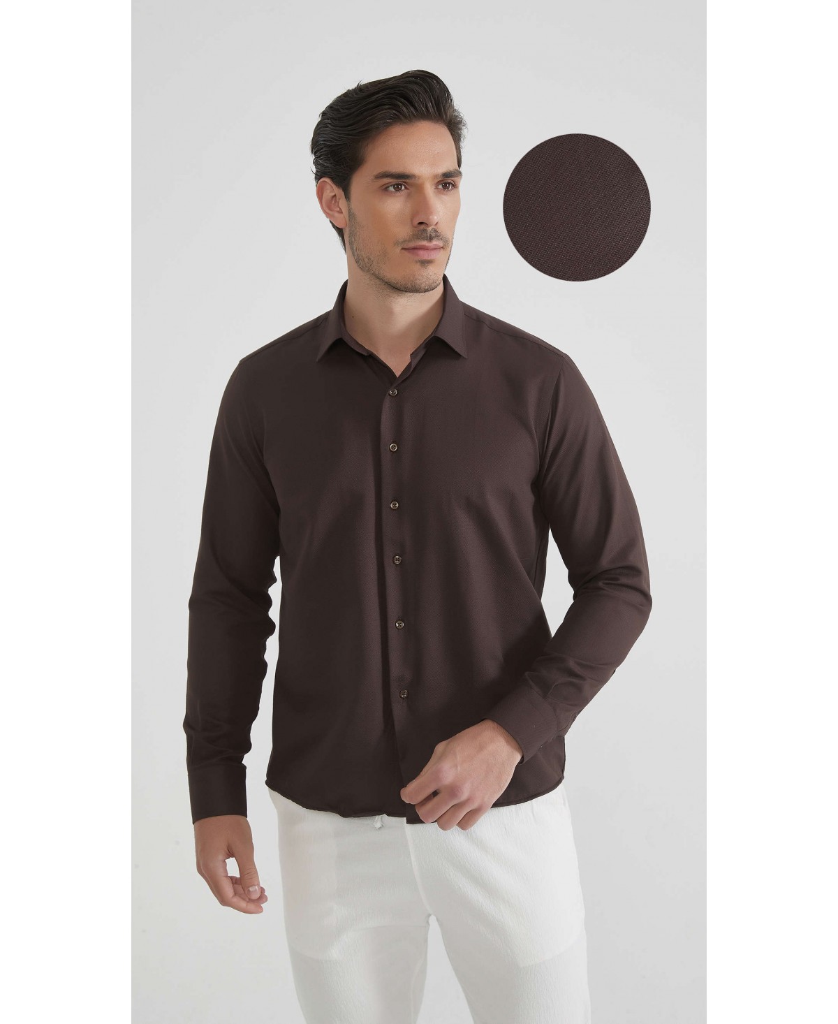 R002-25 Chemise coupe droite en coton piqué - Marron