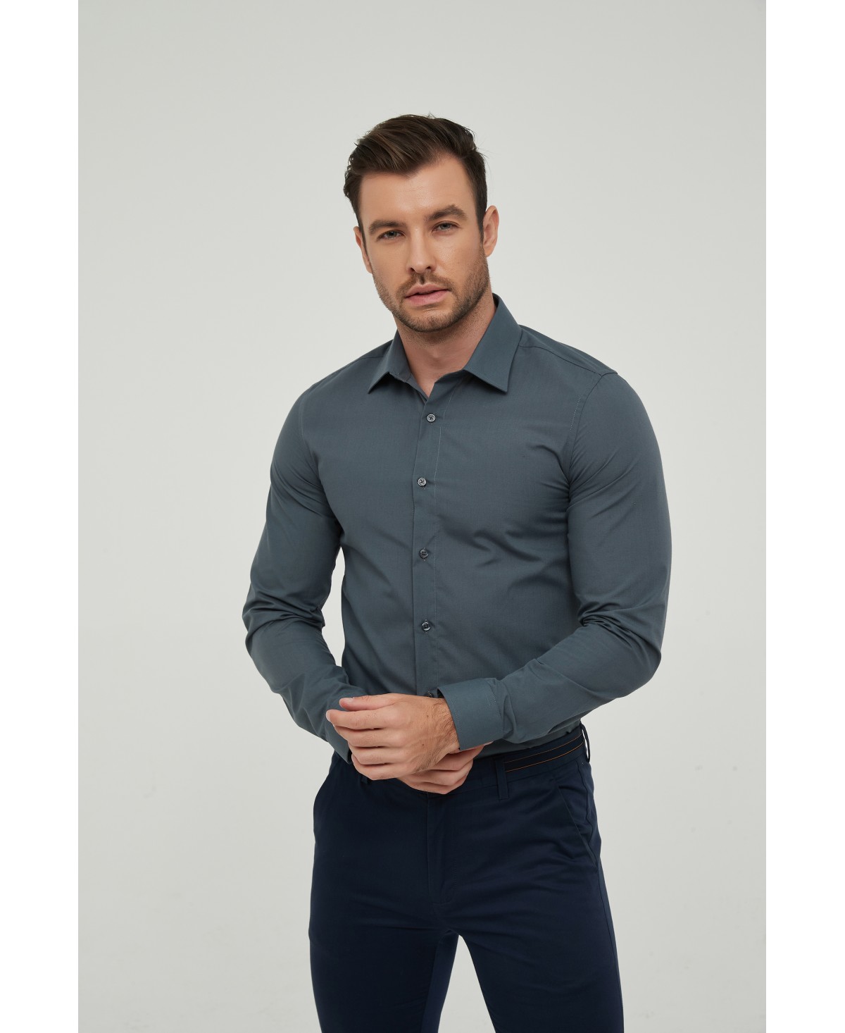 SLIM1009-19 Chemise unie gris anthracite en slim fit