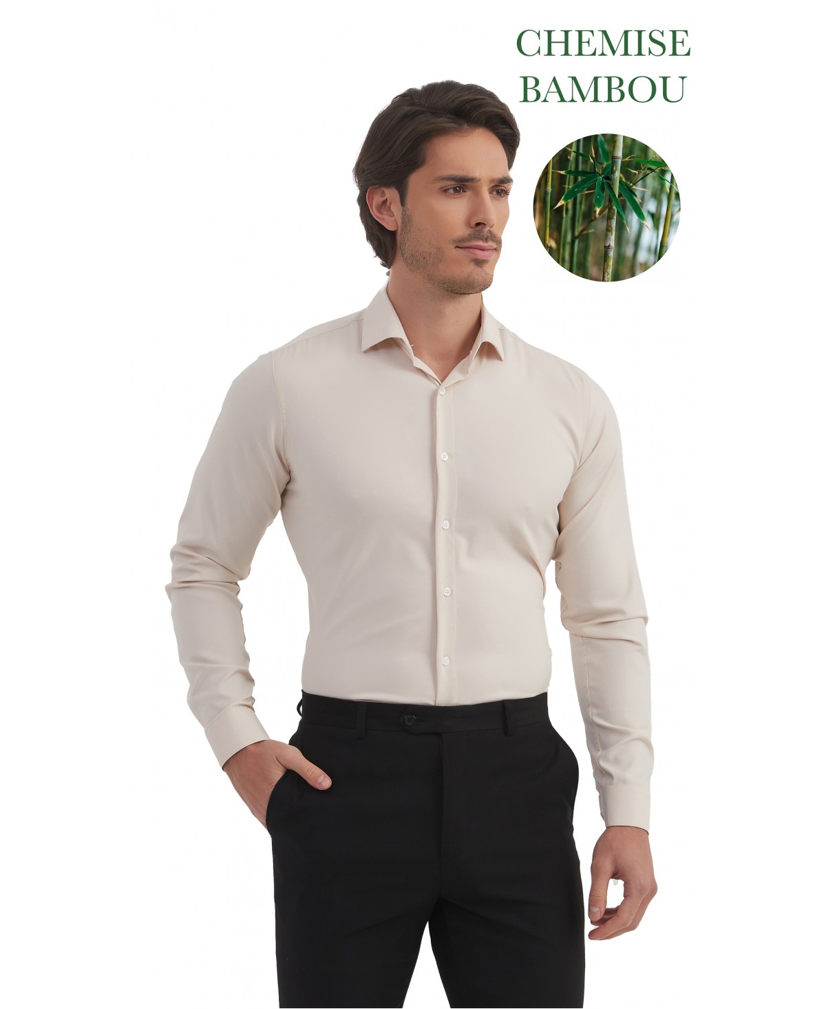 BAM-3390-4 Chemise en bambou tissu piqué - Champagne